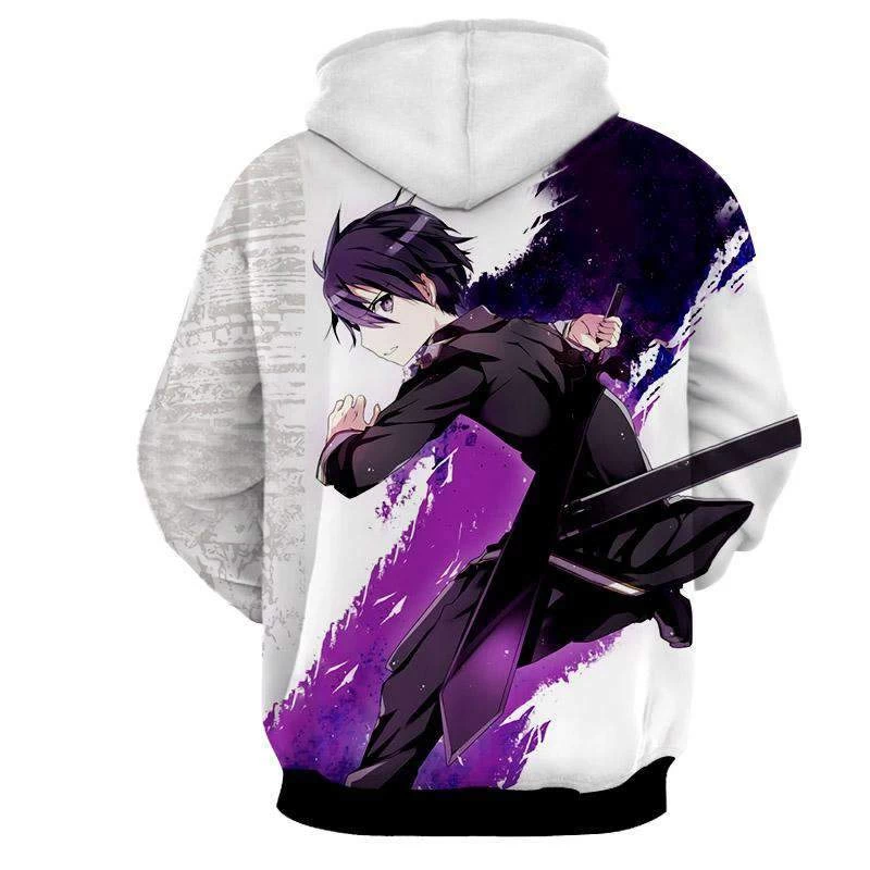 Vous avez l’envie d’avoir un ensemble de style et de manga sur un même vêtement ? Choisissez ce Pull à capuche Sword Art Online Kirito Attack.