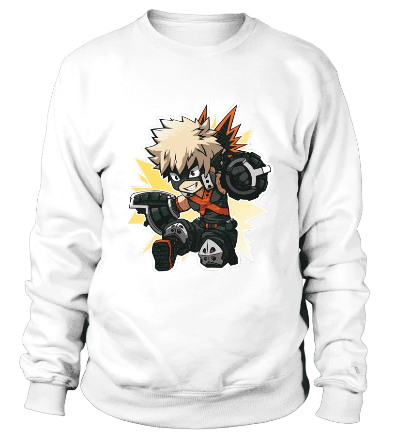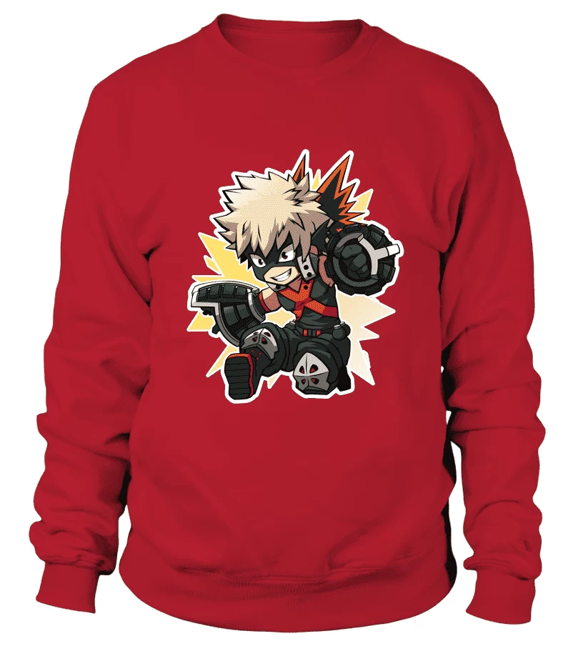 Vous aimez avoir des styles surprenants sur vos sweats ? Alors vous aimerez ce Sweat My Hero Academia de Bakugo et son style explosif.