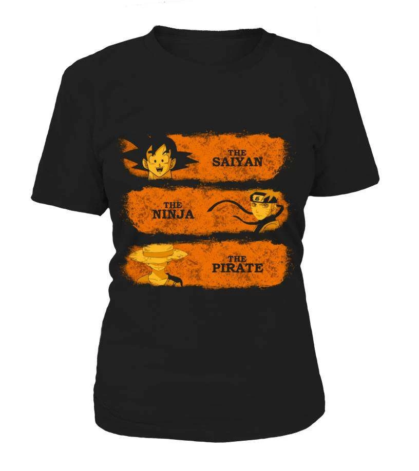 - T Shirt Femme Crossover Dragon Ball X One Piece X Naruto