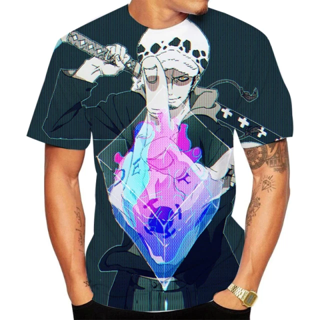 Voyez sur ce t-shirt One Piece Trafalgar Law comment le personnage est stylé. Ajoutez ce haut dans votre dressing en guise de collection.